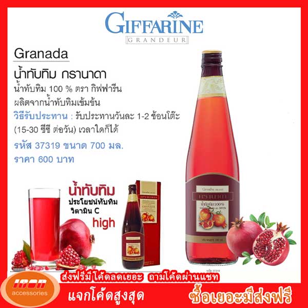 น้ำทับทิม กรานาดา นํ้าทับทิม 100 % ตรา กิฟฟารีน ผลิตจากน้ำทับทิมเข้มข้น Giffarine 37319