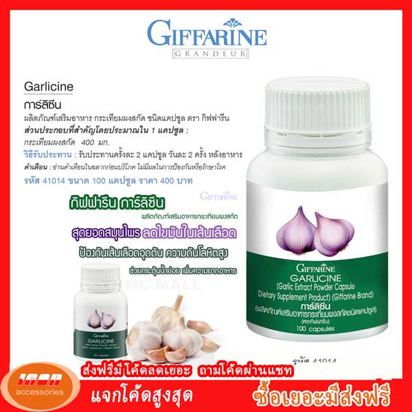 กีฟฟารีน การ์ลีซีน ผลิตภัณฑ์เสริมอาหาร กระเทียมผงสกัดชนิดแคปซูล Giffarine Garlicine 41014